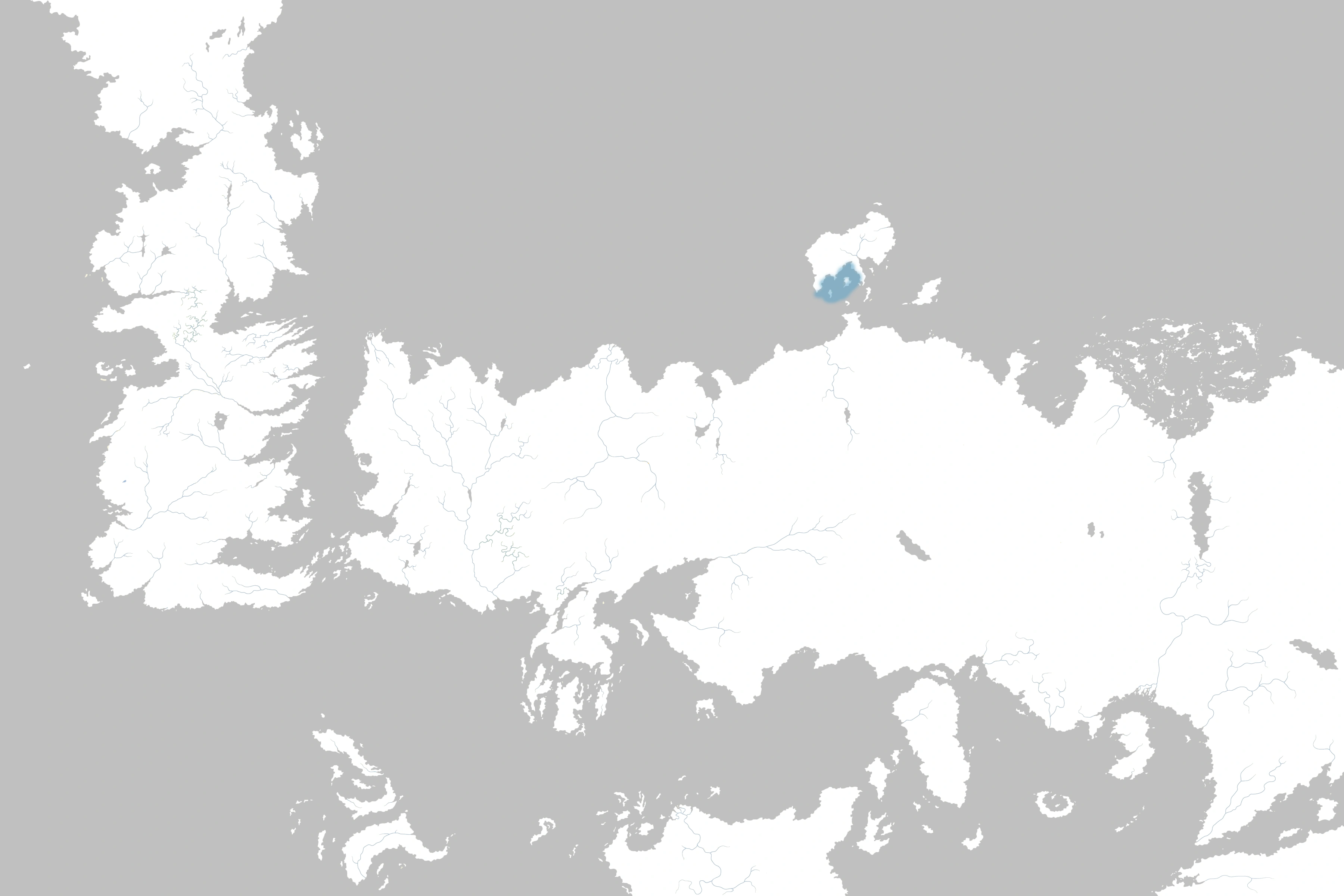 Se encuentra entre la isla de Ibben y la costa norte de Essos. La bahía conecta con el Mar de los Escalofríos.[3]