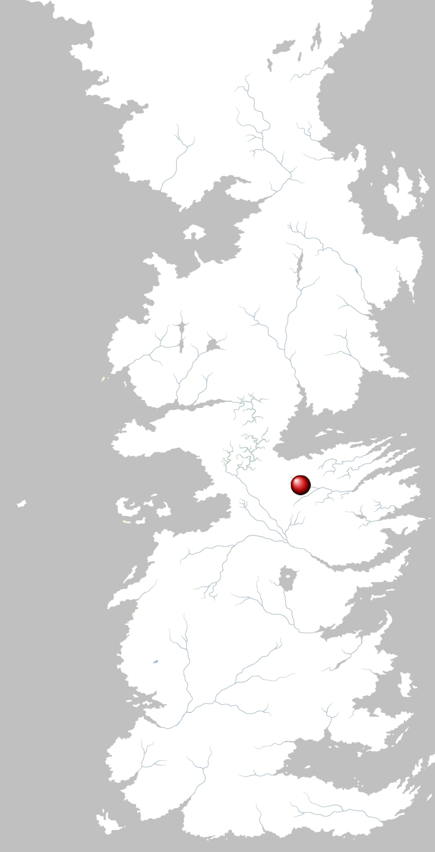 Está ubicado en el Valle de Arryn, al noroeste del Nido de Águilas.[2] Se encuentra rodeado de dos lagos y de varias montañas, situándose en la unión de dos ríos que desembocan en el Mar Angosto. Al este, siguiendo el curso del río, se ubica Hogar.[3]