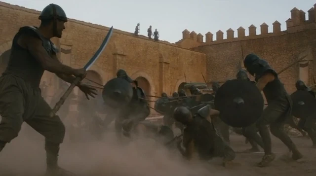 Sin los Inmaculados, Astapor estaba indefensa; sus paredes eran viejas y en ruinas, sin guardias en las torres. Incluso un modesto khalasar Dothraki probablemente podría haber tomado la ciudad, pero ninguno lo había intentado alguna vez a causa de los Inmaculados[2] y, al parecer, nadie pensó que era una mala idea dar el control de la totalidad de sus mejores soldados a un comprador tan ambicioso como la la reina guerrera dentro de sus muros.